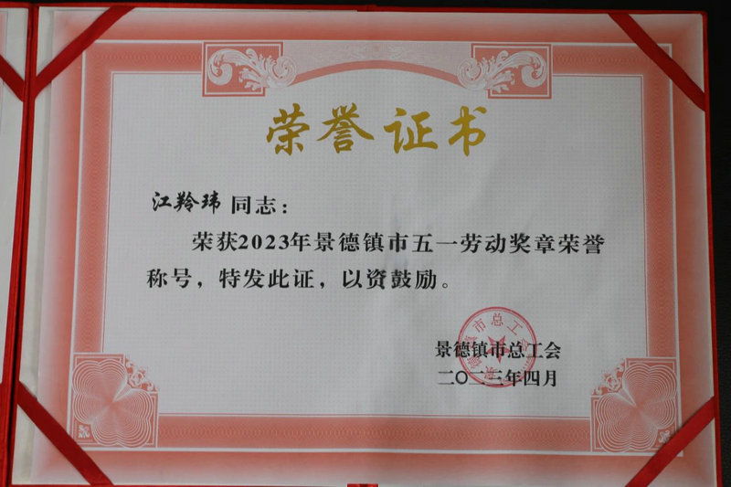 近日,集團員工陳勛和江羚瑋榮獲市總工會(huì )授予的2023年景德鎮市“五一勞動(dòng)獎?wù)隆睒s譽(yù)稱(chēng)號。