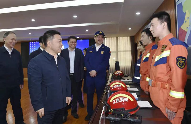 來(lái)到南昌市西湖區八一消防救援站,葉建春參觀(guān)車(chē)輛器材、救援裝備,了解隊伍建設、日常訓練、執勤戰備等情況,并與蹲守在萬(wàn)壽宮歷史文化街區、繩金塔及部分重點(diǎn)商場(chǎng)的消防救援人員視頻連線(xiàn),聽(tīng)取防火救援形勢匯報,要求牢記“對黨忠誠、紀律嚴明、赴湯蹈火、竭誠為民”訓詞,強化安全宣傳教育,提高處突救援能力,盡心盡力守護好人民群眾生命財產(chǎn)安全。