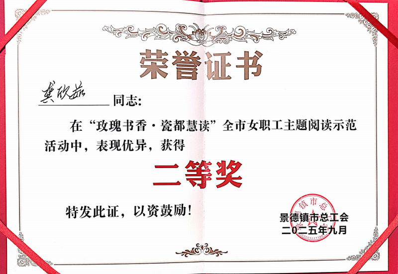 9月19日下午,在景德鎮市總工會(huì )舉辦的“玫瑰書(shū)香 瓷都慧讀”全市女職工示范閱讀活動(dòng)中,陶博城公司女職工胡心怡、龔欣茹代表國控集團參賽,憑借情景朗誦作品《瓷間玫瑰,書(shū)香漫卷》脫穎而出,以 97.70分的優(yōu)異成績(jì)(位列第二),榮獲本次活動(dòng)二等獎!
