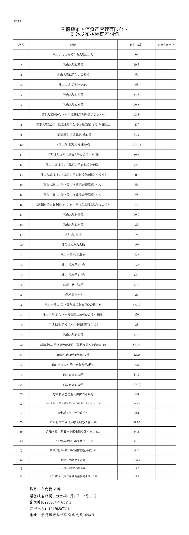景德鎮市國信資產(chǎn)管理有限公司對外發(fā)布招租資產(chǎn)明細
