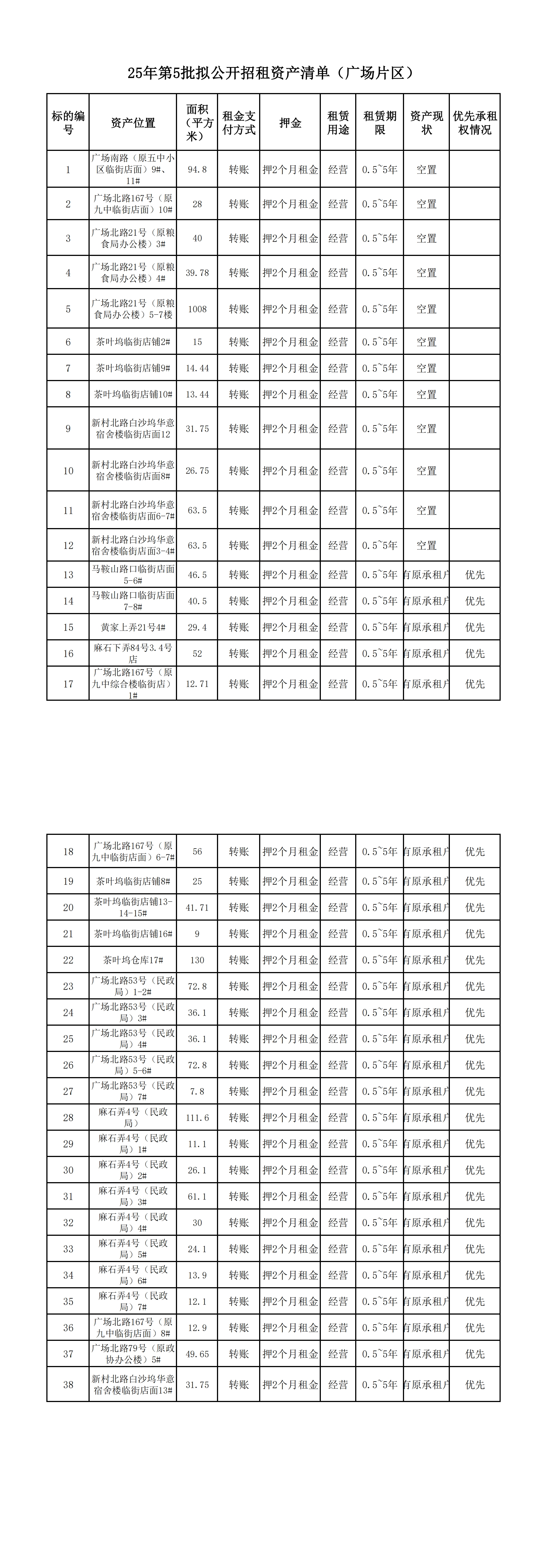 現位于廣場(chǎng)片區資產(chǎn)進(jìn)行公開(kāi)招租,具體招租標的物信息面積詳見(jiàn)《招租清單》